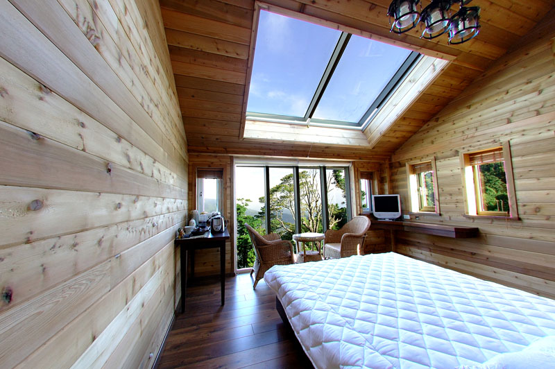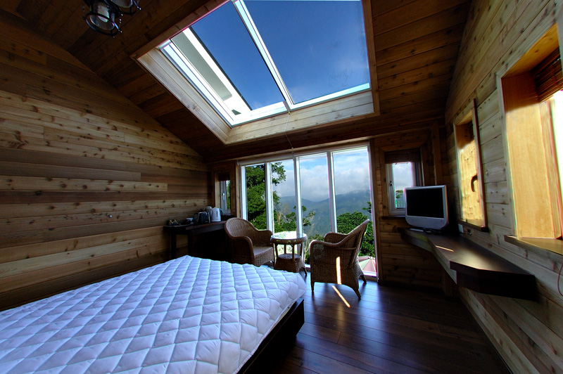 溫暖舒服的大床加上大天窗及落地玻璃